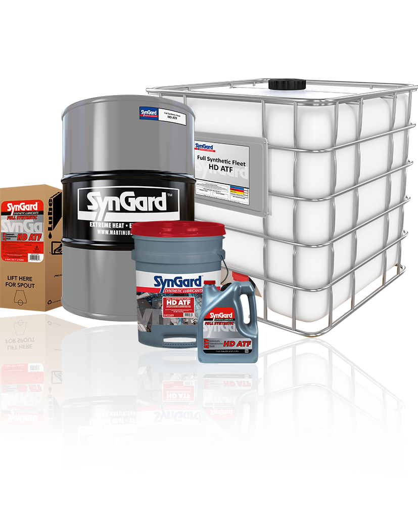 SynGard™ Fleet Heavy Duty Transmission Fluid is engineered from premium synthetic base stocks to provide exceptional performance in severe operating conditions. SynGard Fleet Heavy Duty Transmission Fluid is ideal for use in most heavy duty automatic transmissions offering outstanding gear shifting and power transfer performance including heavy duty pickup trucks, commercial vehicles and trucks, emergency vehicles, off-road and on-road highway vehicles, municipal fleets, vans, and school buses.